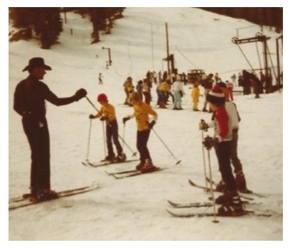 1982 - THE KIDS GET THEIR FIRST SKIING LESSONS FROM THE COACH George gave Kevin and Rick skiing lessons at his place at Green